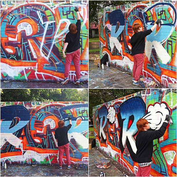 Today I hit up the courts to teach 12yr old, Ricco how to piece. This is his first time at it & he truely excelled ! My ‘R’ on the left. His ‘R’ on the right. (Taken with Instagram at Camperdown Basketball Courts)